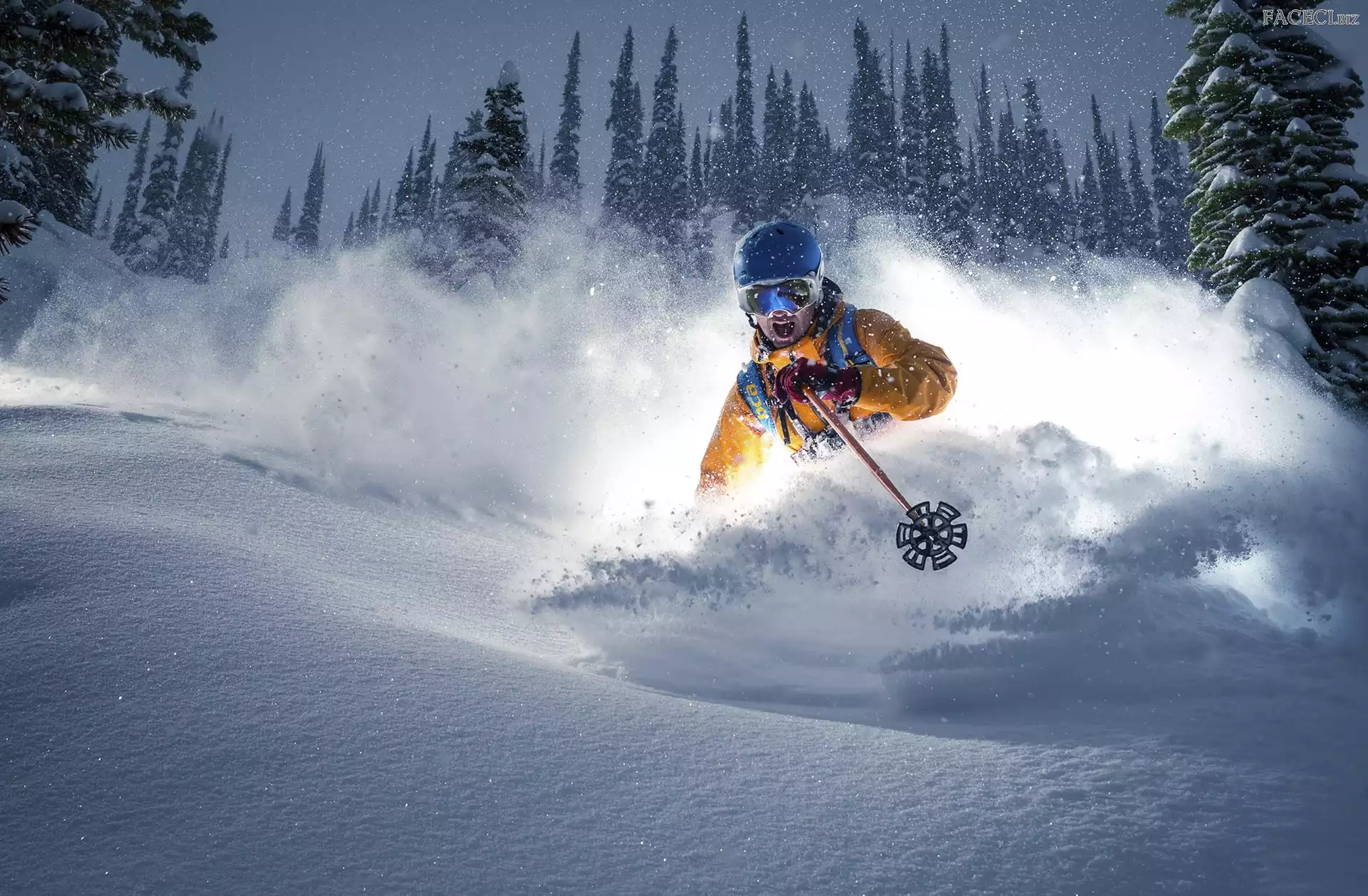 Góra, Zima, Narciarz, Las - faceci.biz